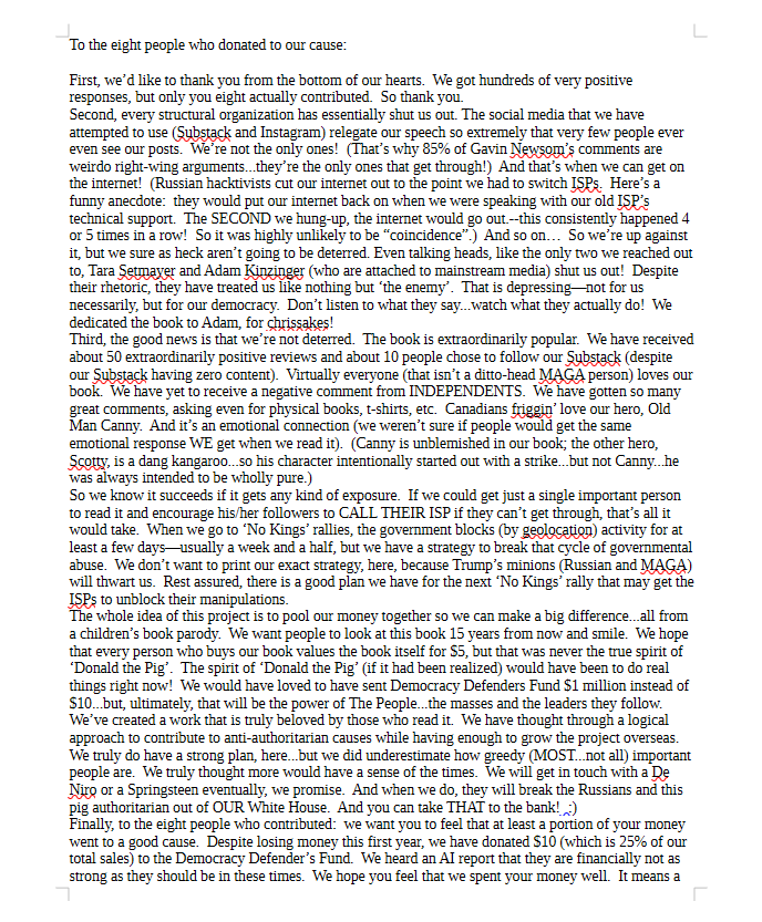 If you have a similar story (in terms of importance regarding authoritarianism, etc.) please submit it to “DonaldThePigBook@proton.me” with the subject line “NEWS ARTICLE TO CONSIDER”. Thank you.